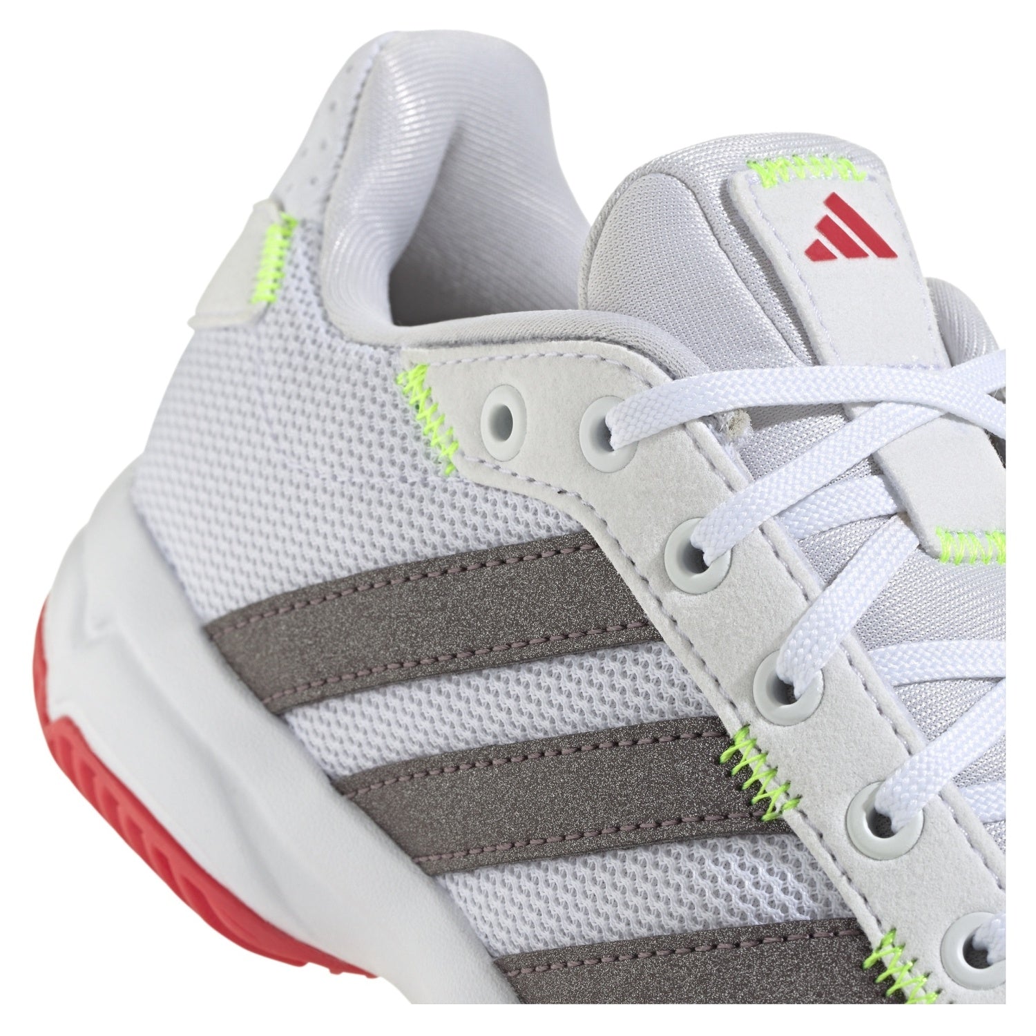 O tênis Stabil Jr para uso interno é perfeito para o aspirante a jogador júnior que busca conforto e potência. Esse tênis unissex apresenta uma parte superior em malha respirável e uma sola de borracha que não deixa marcas para maior durabilidade e tração. Aproveite a estabilidade aprimorada com o Torsion Element e o amortecimento excepcional com o Adiprene+ no antepé. Um brinde ao desempenho e ao conforto em todas as quadras cobertas.