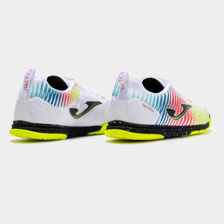 Tênis de futsal. O modelo Tático é sinônimo de profissionalismo e alto desempenho na quadra. Sua leveza e toque permitem alcançar a máxima velocidade e agilidade. Jogadores Joma internacionais como Dyego Zuffo gostam desses tênis em seus jogos.